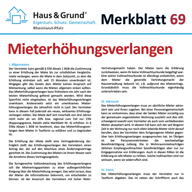 Merkblatt: Mieterhöhungsverlangen