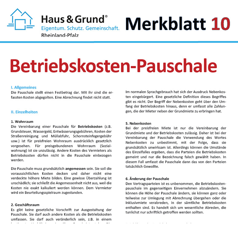 Merkblatt: Betriebskosten-Pauschale